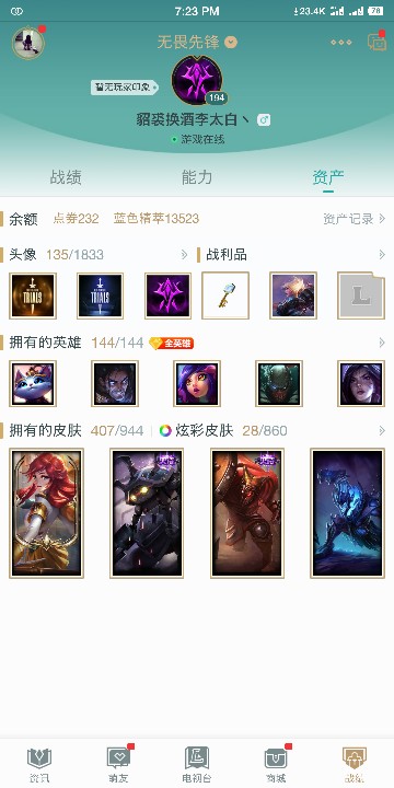 首页 > 租号大厅 > 英雄联盟 > 联盟五区/无畏先锋 > 钻石框全英雄410p至臻剑魔至臻vn至臻拉克丝诺手勇敢的心醒狮嫦娥虎痴之拳赵云关羽女校长丧尸火男