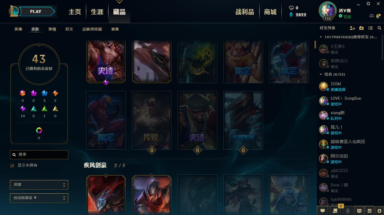 有110个英雄有43个皮肤