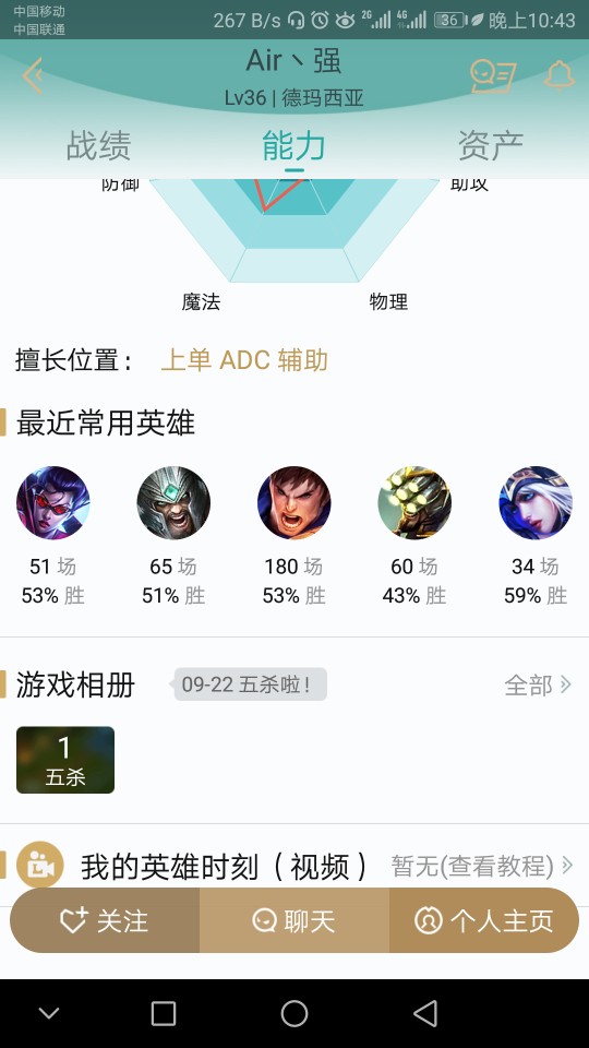 • 游戏区服:英雄联盟 / 联盟五区 / 德玛西亚