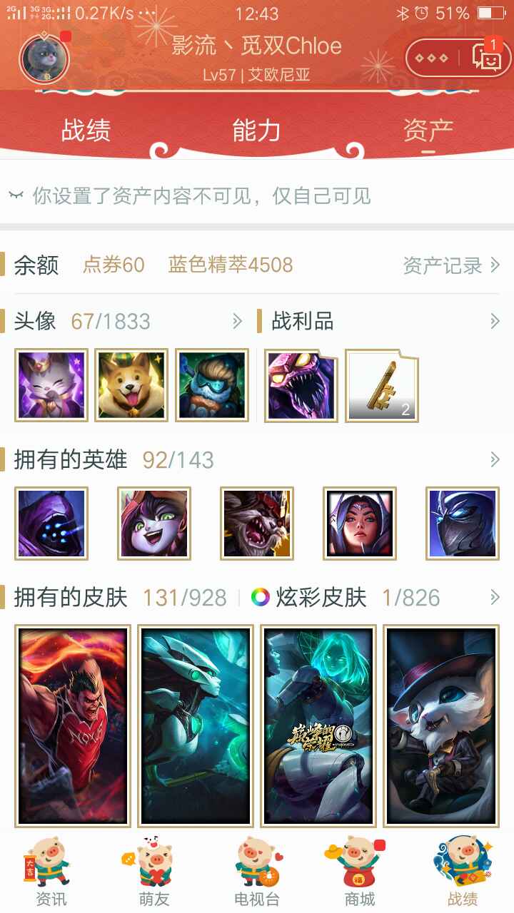 首页 > 租号大厅 > 英雄联盟 > 艾欧尼亚/艾欧尼亚 > 电一艾欧尼亚租号,英雄皮肤众多,英雄90多,皮肤140多,排位匹配随便打,欢迎各位朋友前来租号