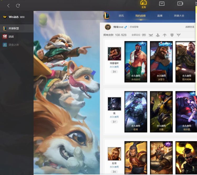 首页 > 租号大厅 > 英雄联盟 > 联盟三区/皮城警备 > 119个英雄。皮肤108个