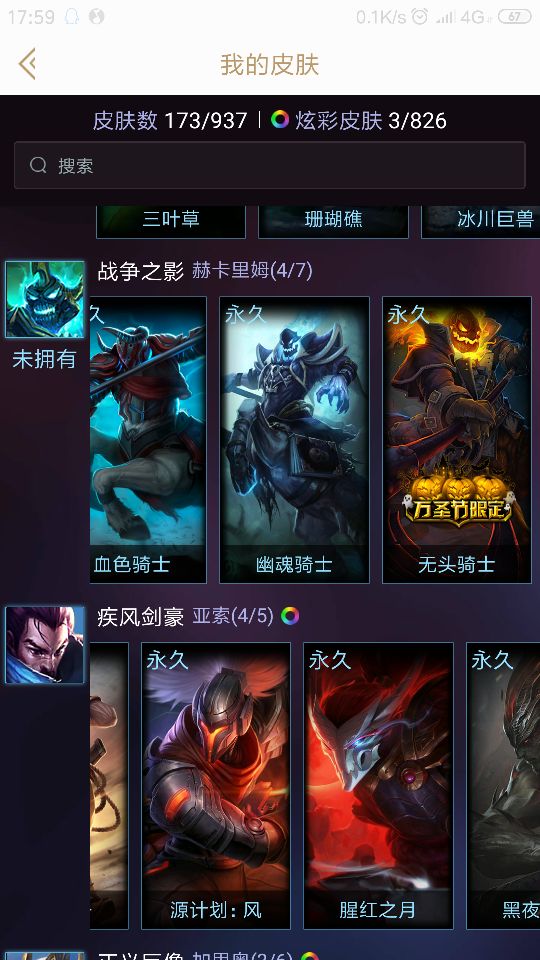 贾克斯武神,琴女DJ,亚索四个皮肤,盲僧至高之拳,各种冰雪节万圣节和年限皮肤。