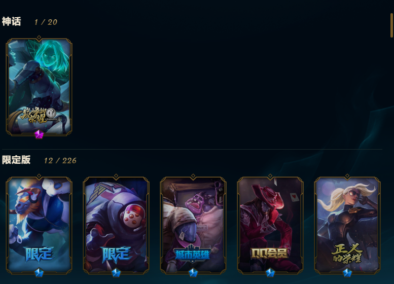 影流132个英雄 皮肤一百多个12限定11传说35史诗