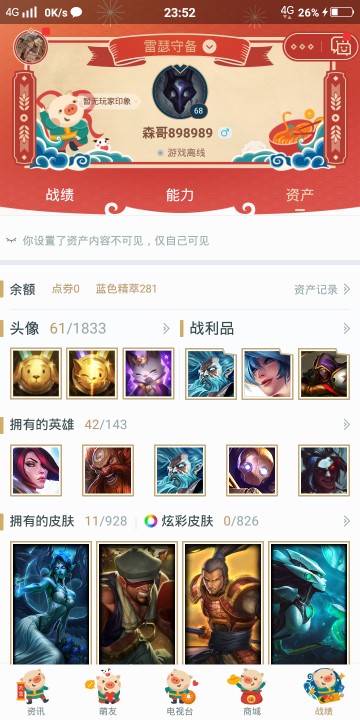 首页 > 租号大厅 > 英雄联盟 > 联盟二区/雷瑟守备 > 无段位,42位英雄,鬼魂新娘,地下拳王,源计划风,牛扒狂战等皮肤