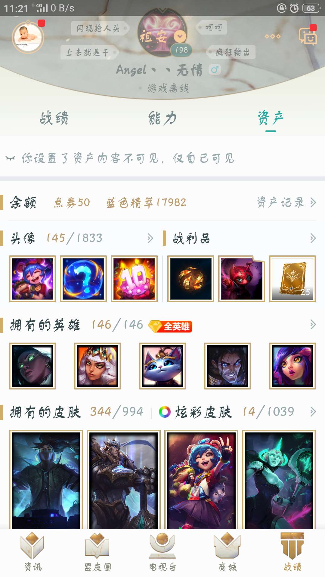 首页 > 租号大厅 > 英雄联盟 > 联盟一区/祖安 > 祖安满英雄,344皮肤
