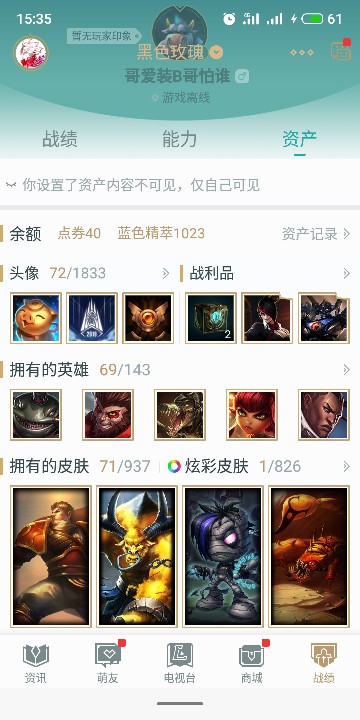 首页 > 租号大厅 > 英雄联盟 > 黑色玫瑰/黑色玫瑰 > 有几个限定。闲置号,本人上班没时间玩,开黑必备。