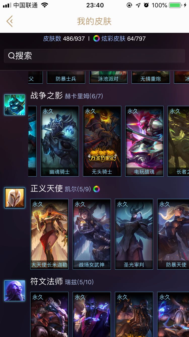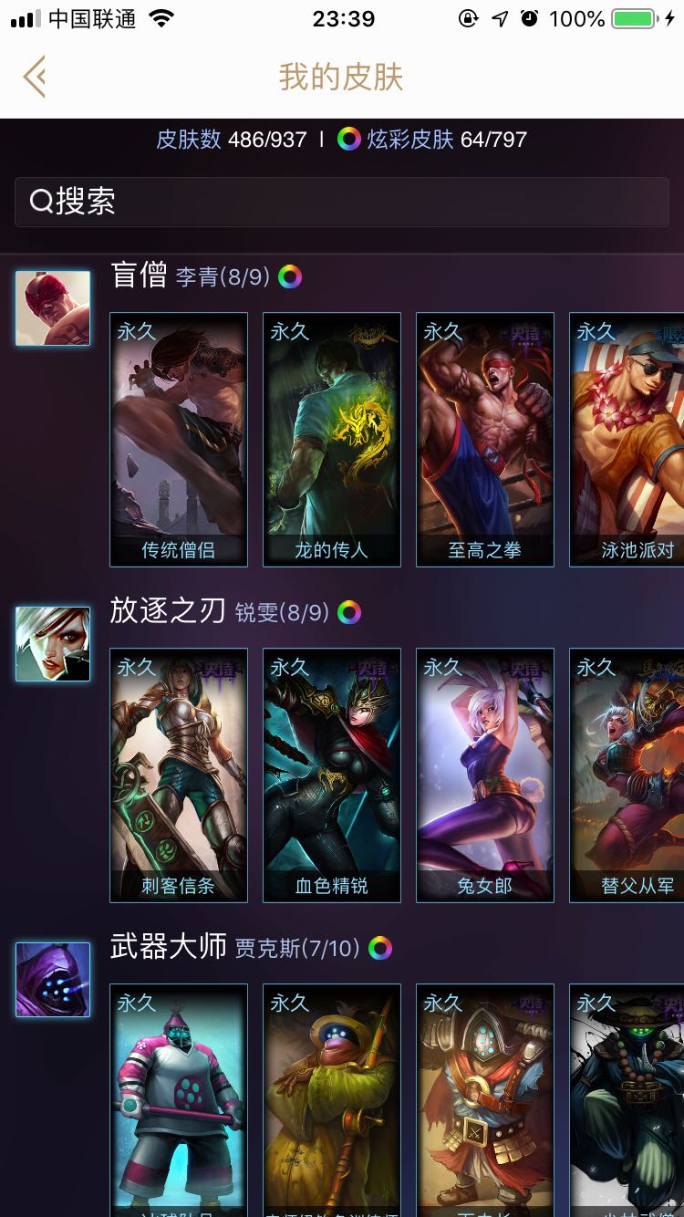 钢铁烈阳全英雄龙瞎号 锐雯全皮肤(炫金话花木兰) 瞎子基本全皮肤 劫全皮肤 彩虹马 羊年限定金克斯 skt大部分都有 等等