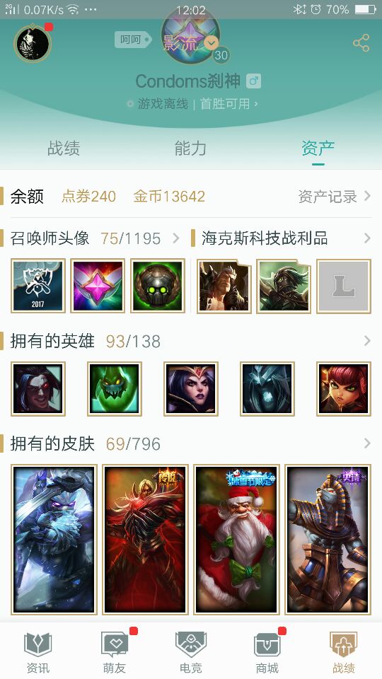 影流英雄93皮肤69瞎子地下拳王等各种限定,欢迎各位老铁来租