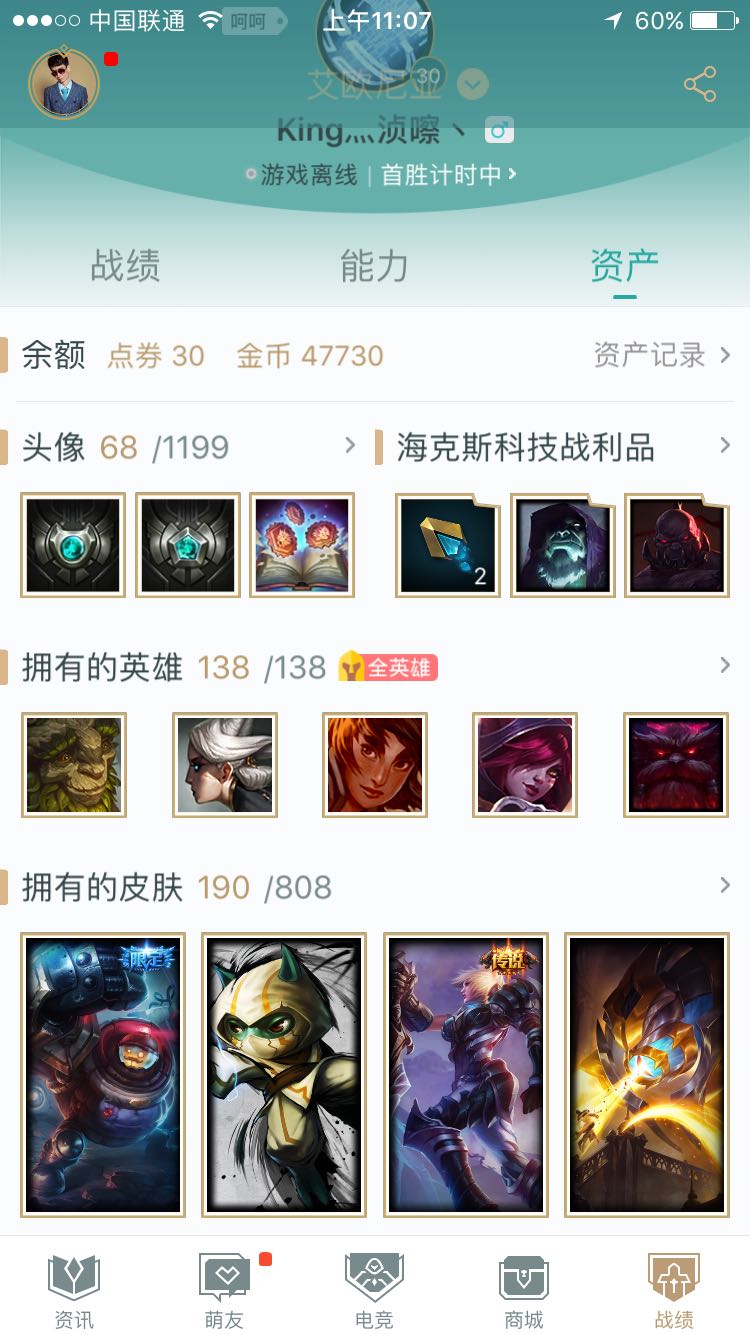 电一20页符文,203皮肤,满英雄,可排位,很多限定皮肤