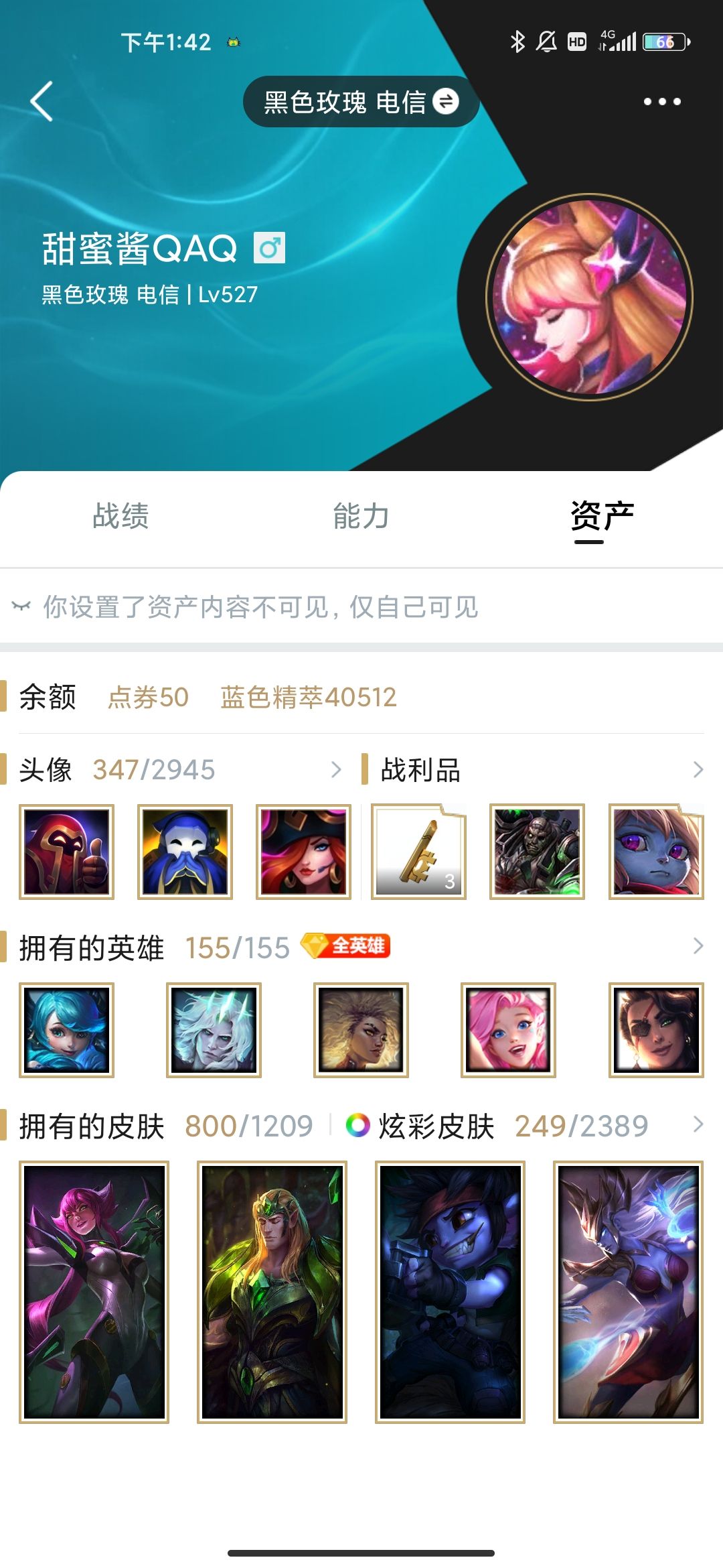 黑色玫瑰区全英雄800多个皮肤龙虾皮生化统领,狗年限定狗头加炫彩。vn,剑圣,剑姬,卡特,蕾娜