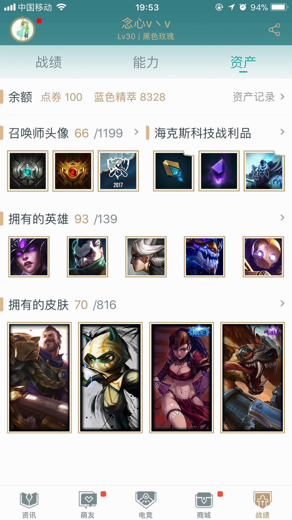 黑色玫瑰英雄93皮肤70账号fnc皮肤暗杀星皮肤冰雪节皮肤vn苍穹凤凰钢铁皇子限定等等等等皮肤英雄球女vn德莱文应有尽有