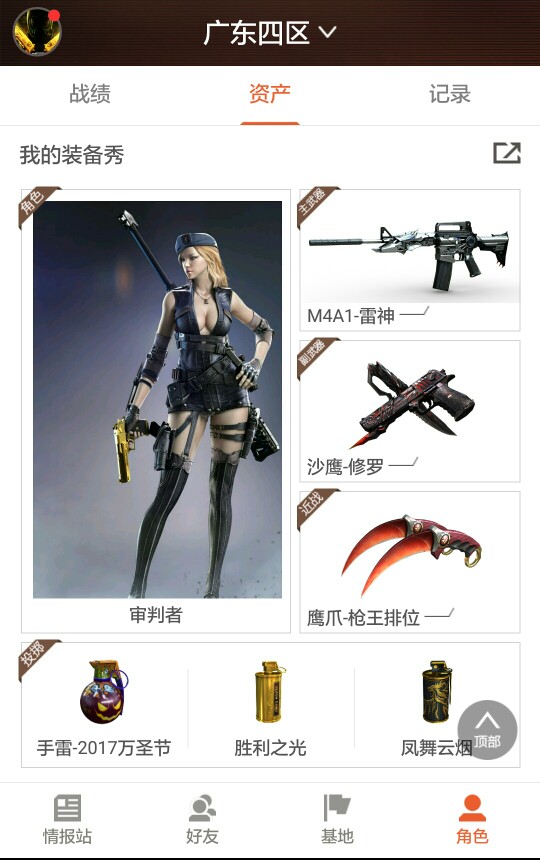 • 游戏区服:穿越火线 / 南部 / 广东四区