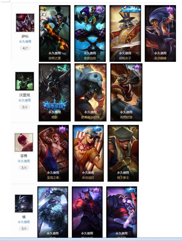 英雄94个够大家日常玩耍,可以排位,目前白金2,皮肤111个,泳池瞎,巧克力波比,会员限定卡牌,万圣瑞兹,大嘴冰雪,猴年猴子等