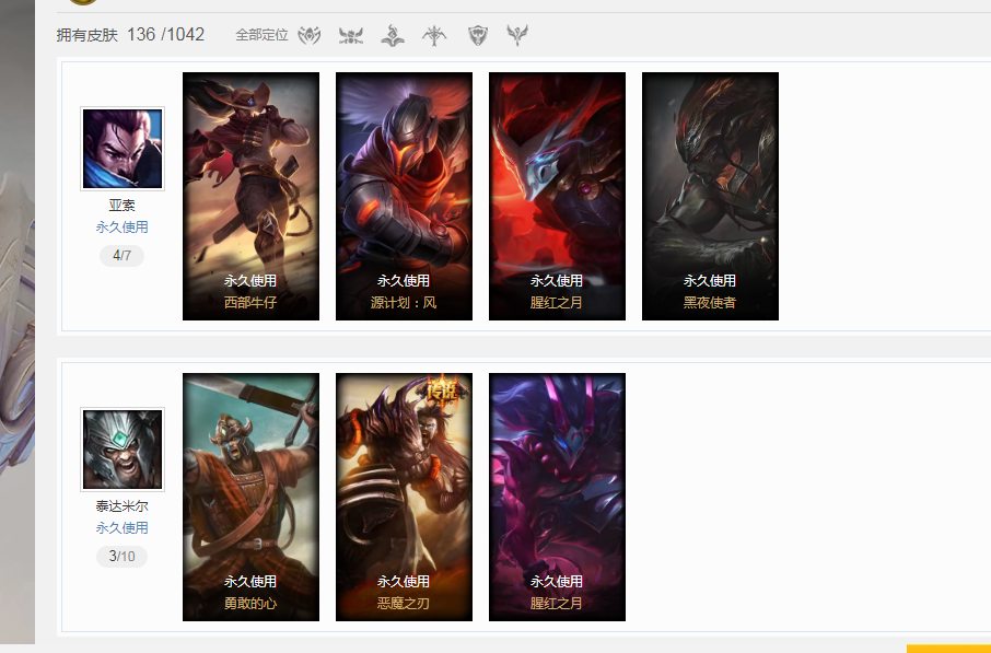 136个皮肤 132个英雄 4个原计划 1个年限 亚索4个 瞎子至高和地下 大头三个 蛮子恶魔 提莫欧米咖 诺手篮球 剑姬女校长+两个皮肤包 低价租号!超超超低 剑魔至臻 吕布 蜘蛛影魔