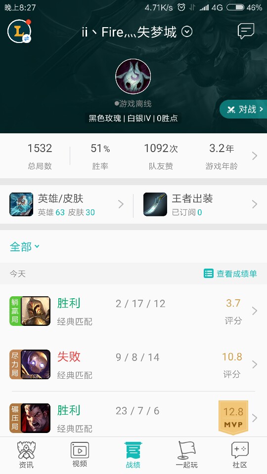 白银四,63个英雄,30个皮肤