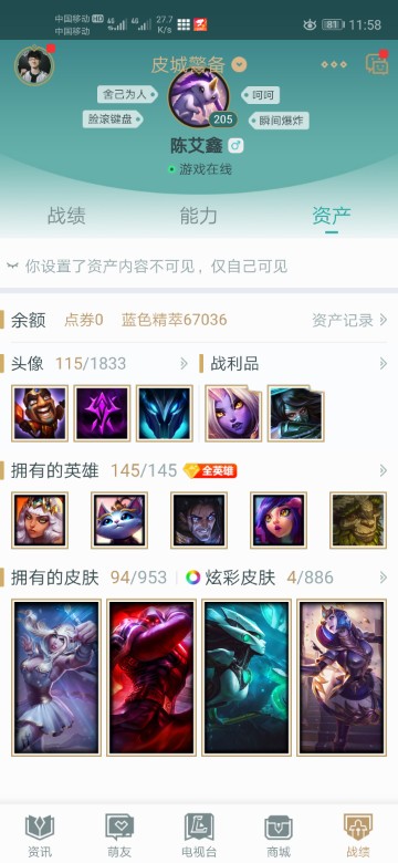 首页 > 租号大厅 > 英雄联盟 > 联盟三区/皮城警备 > 全英雄皮肤多皮城警备148个英雄112个皮肤还有最新出的新英雄
