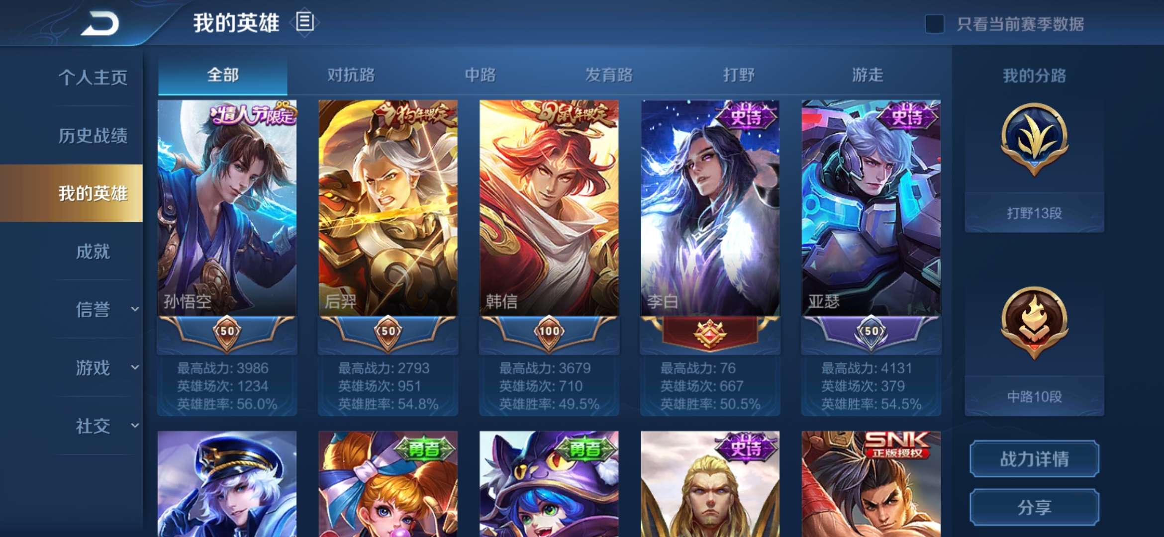王者13星铭文满级可以排位有地狱火,至尊宝,千年之狐,街头霸王,飞衡等