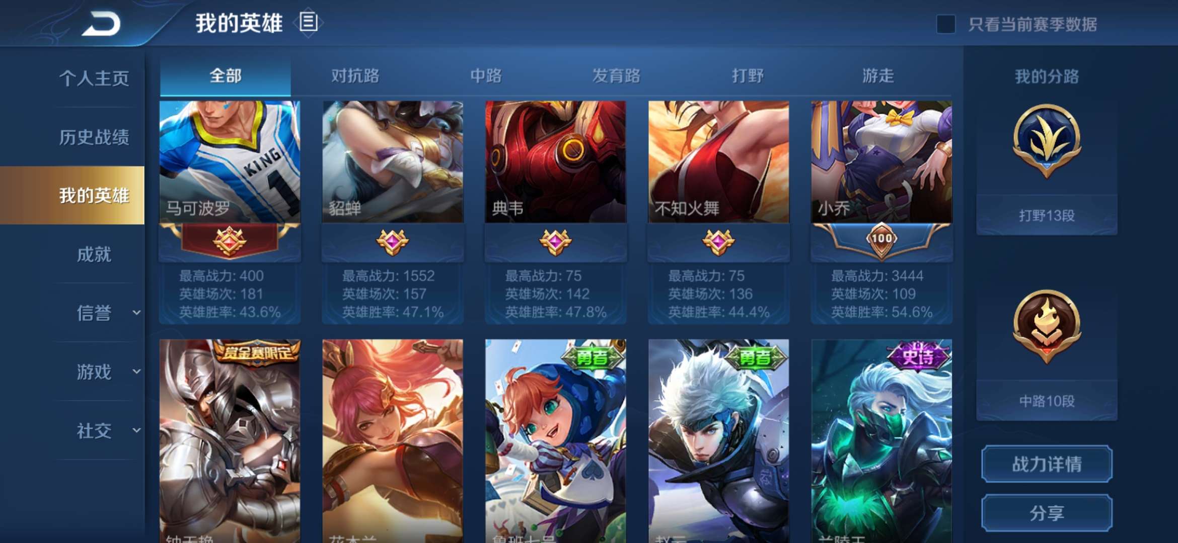 162区,铭文满配可自己搭配,有地狱火,至尊宝,千年之狐,心灵战警,辉光之辰,暗影狩猎者,飞衡,街头霸王等,适合打野的兄弟,铭文打野法师射手边路辅助的都有满配,允许打排位巅峰赛,不能跟我的好朋打以及打游戏不能被举报到95分以下,不能乱改id以及不能乱用我点券和荣耀积分和皮肤碎片以及不要超时超过十分钟。