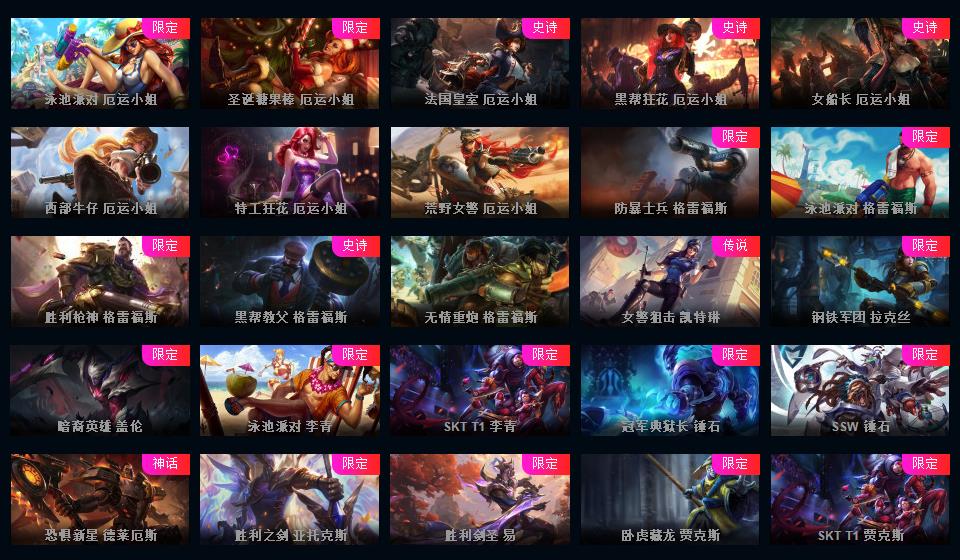 613皮▲108限定皮肤+龙瞎龙琴舞会海克斯安妮花木兰嫦娥等各种年限皮肤多冰原狙击等优质皮肤